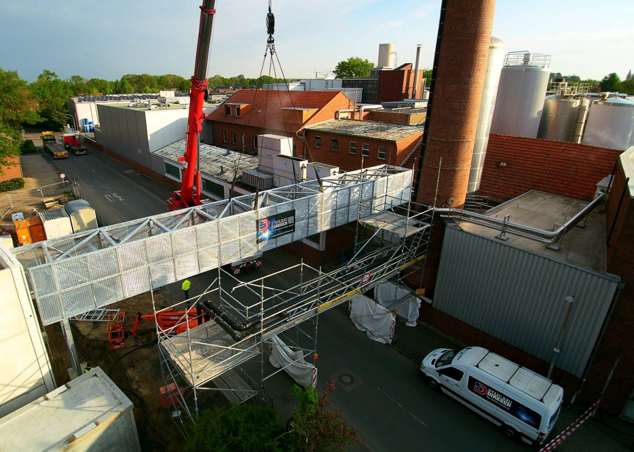 Auch Bühnen, Laufstege und Treppenanlagen sowie Unterkonstruktionen und Abhängungen von maschinellen Anlgenteilen gehörten zum Leistungsumfang.