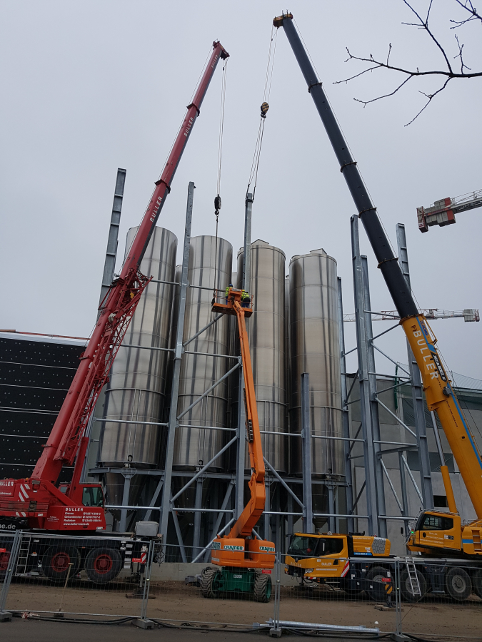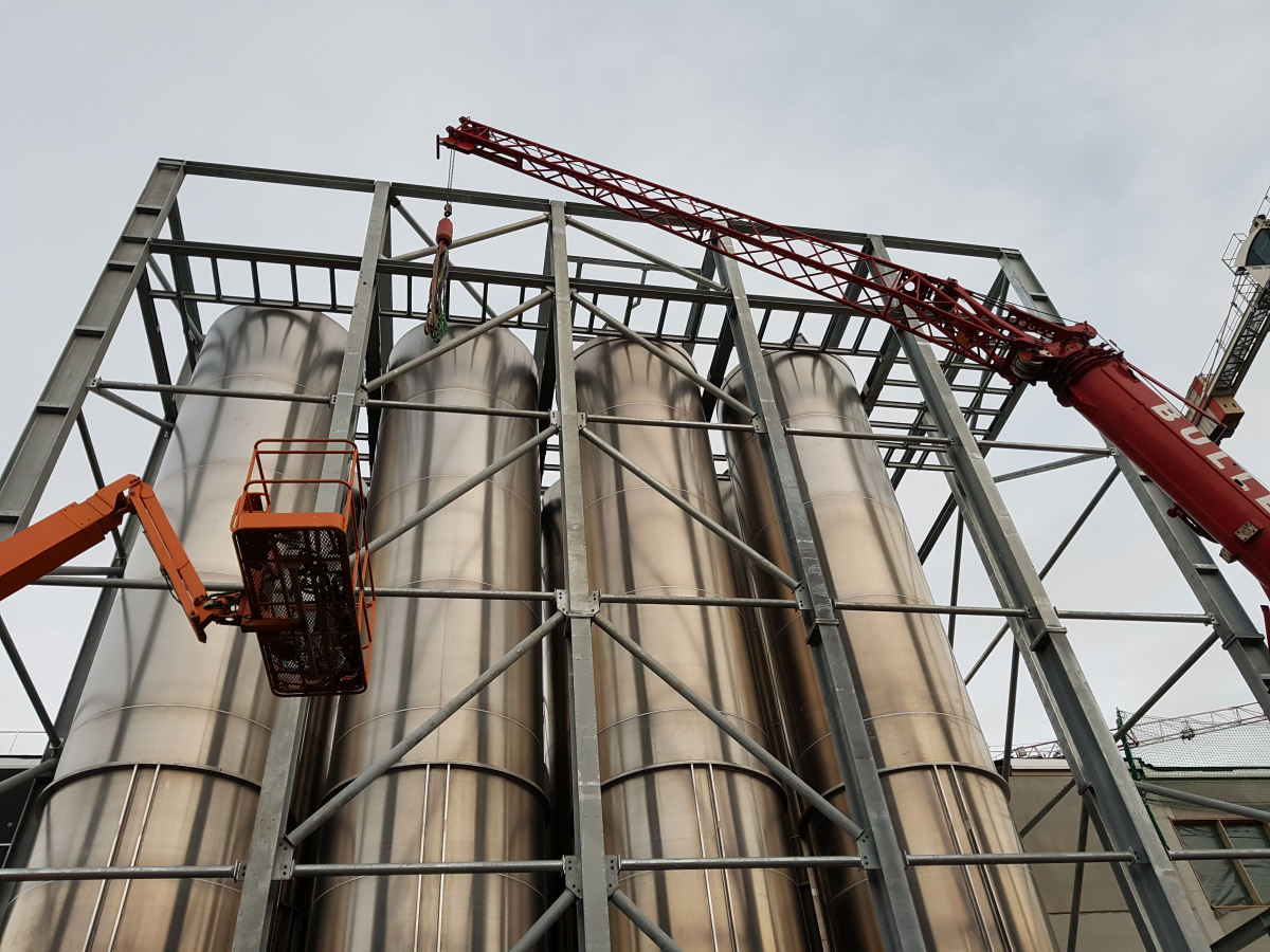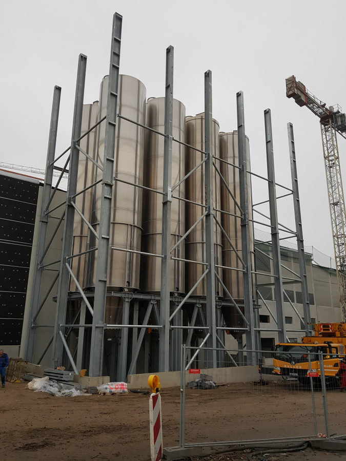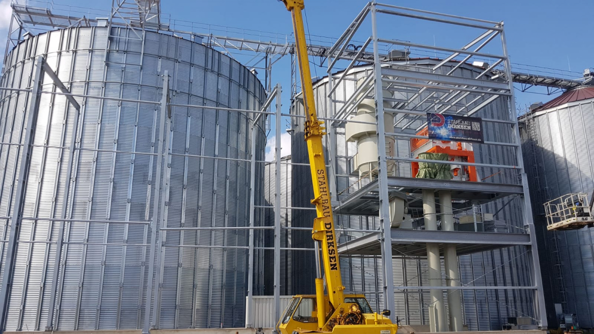 Stahlbau für eine Silo-Anlage.